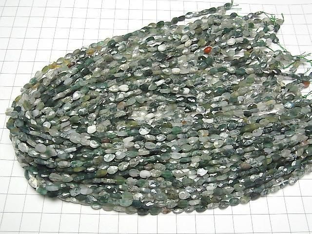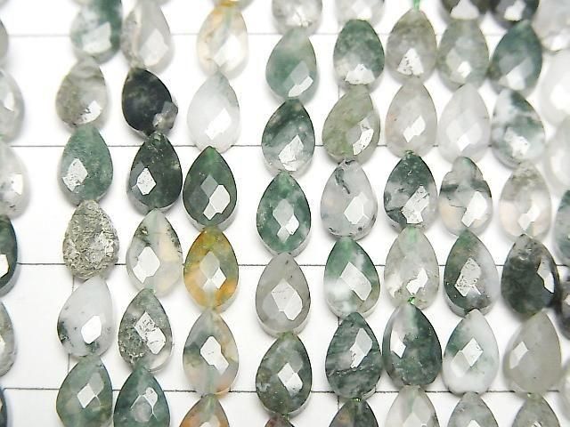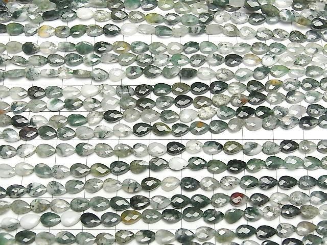 [Video]High Quality! Moss Agate Vertical Hole Faceted Pear Shape 6x4mm 1strand beads (aprx.15inch/36cm)
