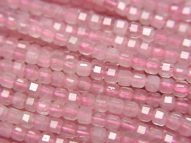 [Video] High Quality! Deep Rose Quartz AA++ Cube Shape 2x2x2mm 1strand beads (approx. 15 inches/38 cm)