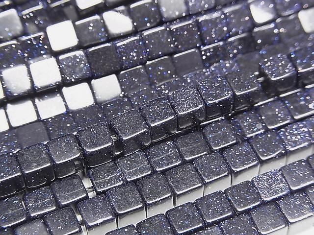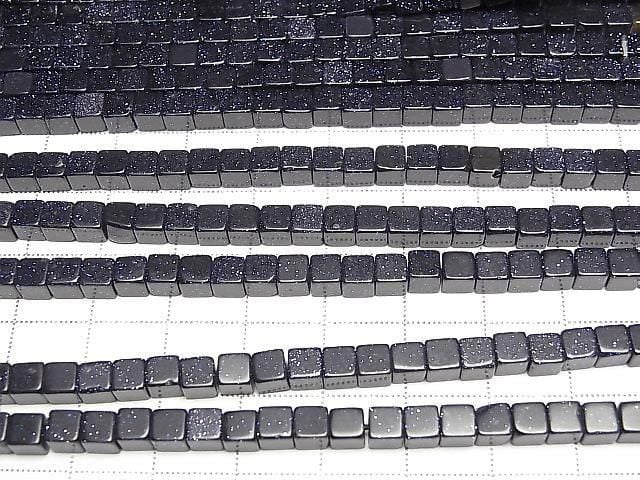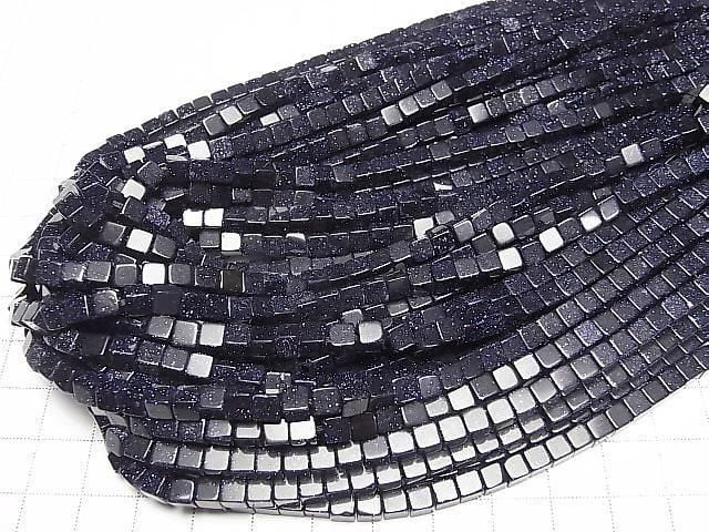 [Video] Blue Golden Sand Stone Cube 4x4x4mm 1strand beads (approx. 15 inches/36 cm)