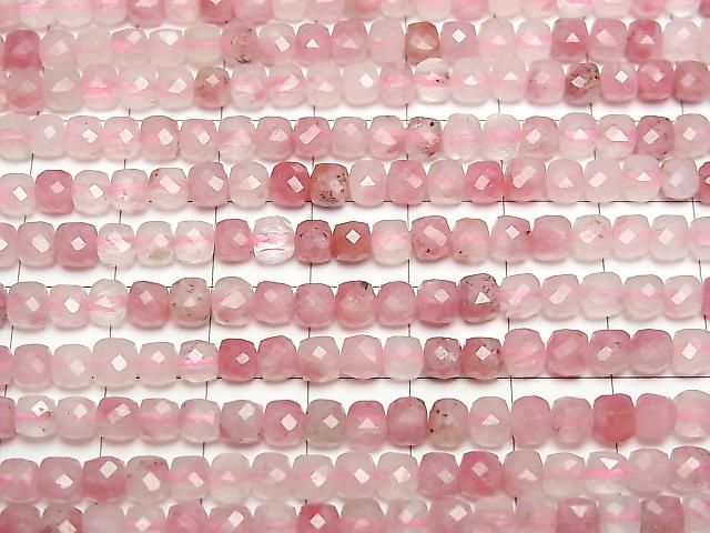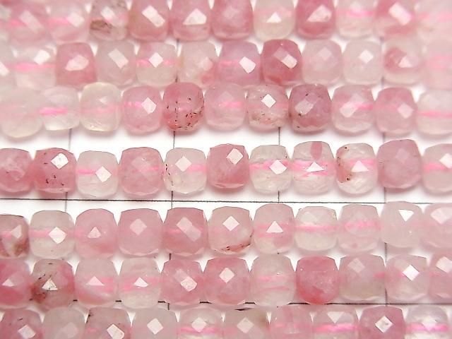 [Video] High Quality! Rhodonite Silica AA++ Cube Shape 4x4x4mm 1strand beads (approx. 15 inches/37 cm)