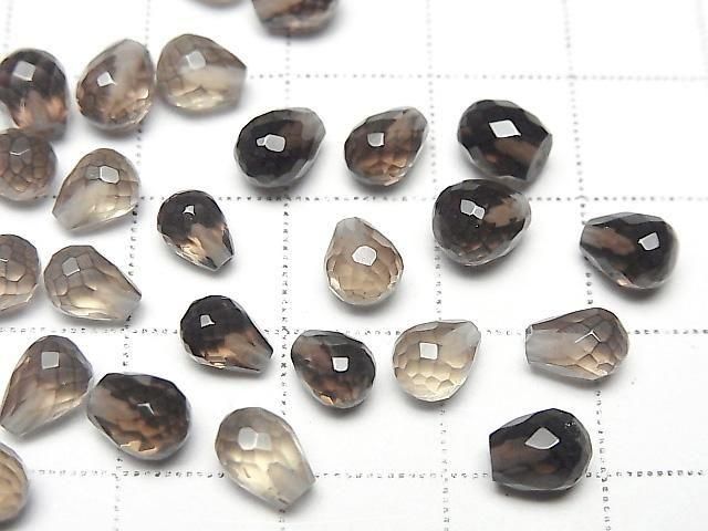 [Video]High Quality Smoky Quartz AAA Half Drilled Hole Faceted Drop 6x5mm 5pcs