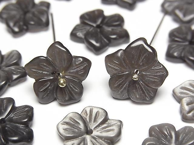 [Video] Silver Obsidian Flower 14mm Center Hole 2pcs