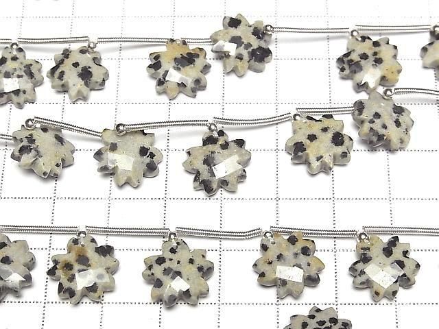 [Video] Dalmatian Jasper Flower Shape 1strand beads (6 pcs)