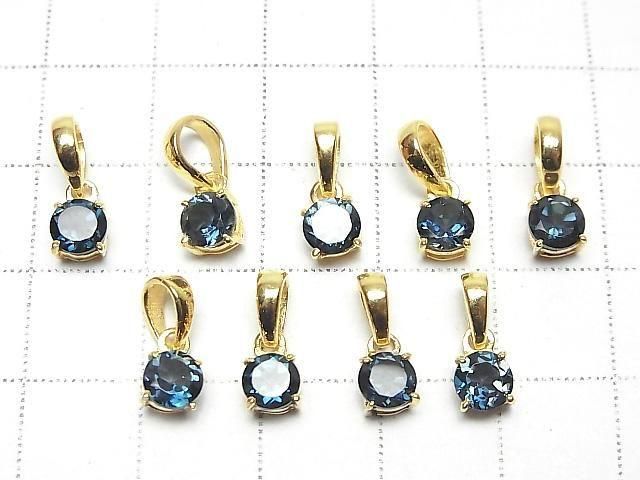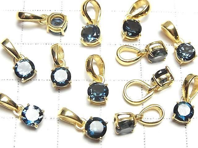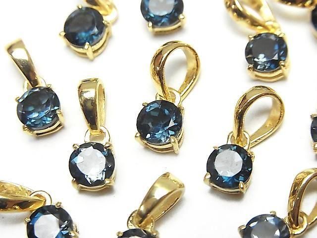 [Video] High Quality London Blue Topaz AAA Round Faceted 5x5mm Pendant 18KGP 1pc