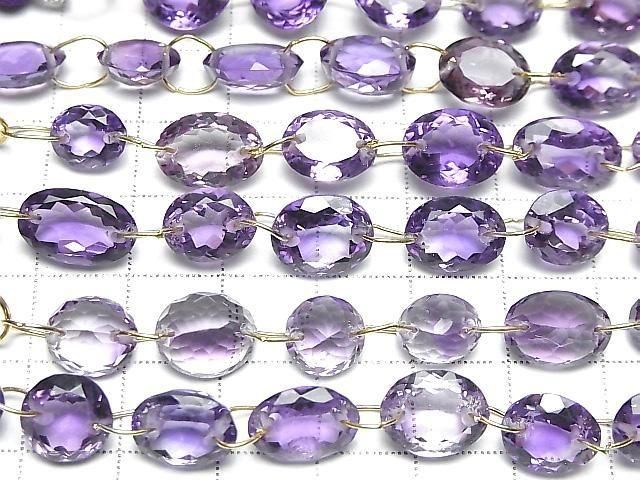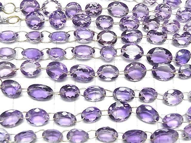[Video] High Quality Amethyst AAA Round-Oval Faceted [Double Hole] 1strand beads (7 pcs)