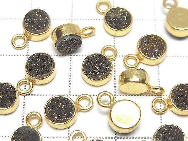 [Video] Druzy Agate Coin 7x7mm Charm Black Yellow Coating 18KGP 2pcs