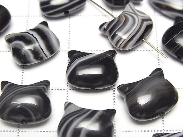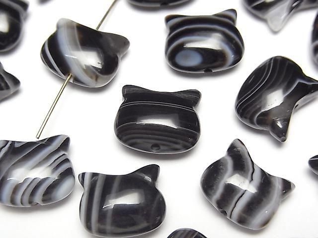 [Video] Striped Onyx Cat Motif 10x12mm [Vertical Hole] 2pcs