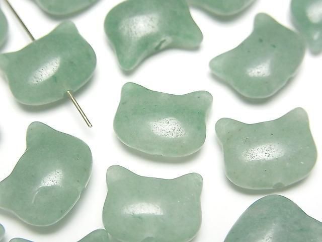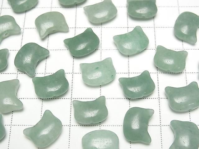 [Video] Green Aventurine Cat Motif 10x12mm [Vertical Hole] 3pcs