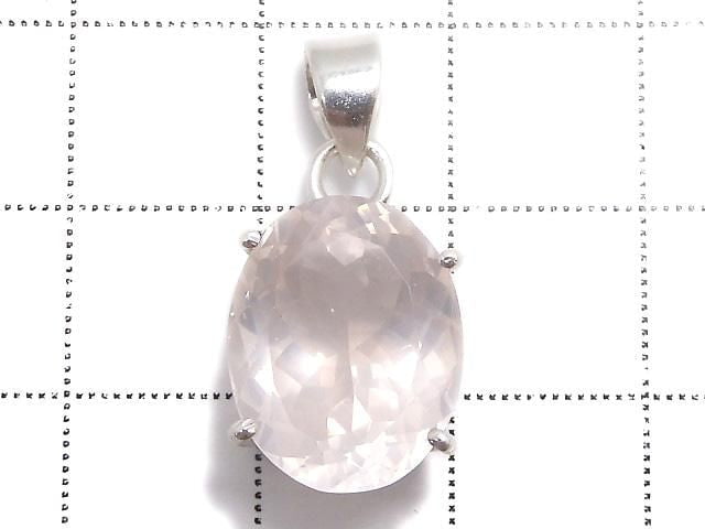 [Video][One of a kind] High Quality Rose Quartz AAA Faceted Pendant Silver925 NO.32