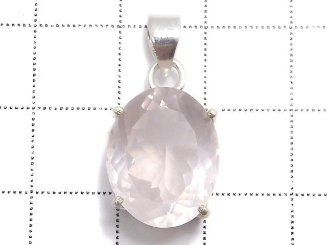 [Video][One of a kind] High Quality Rose Quartz AAA Faceted Pendant Silver925 NO.33