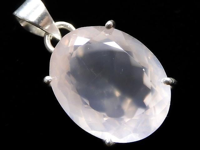 [Video][One of a kind] High Quality Rose Quartz AAA Faceted Pendant Silver925 NO.34