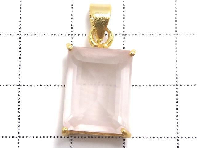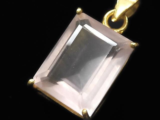 [Video][One of a kind] High Quality Rose Quartz AAA Faceted Pendant 18KGP NO.40