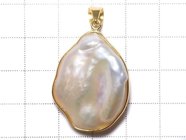[Video][One of a kind] Fresh Water Pearl Keshi Pearl Pendant 18KGP NO.32