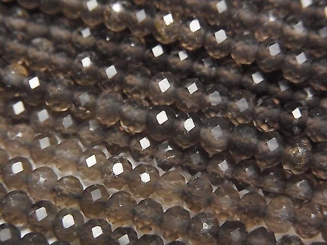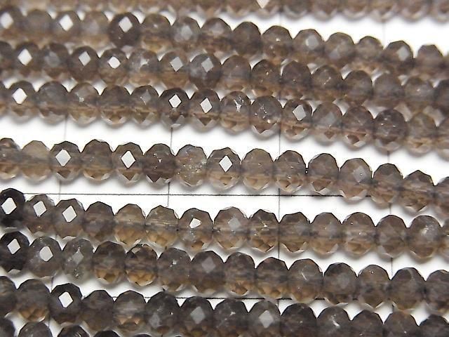 [Video]High Quality! Smoky Quartz AAA Faceted Button Rondelle 4x4x3mm 1strand beads (aprx.15inch/37cm)