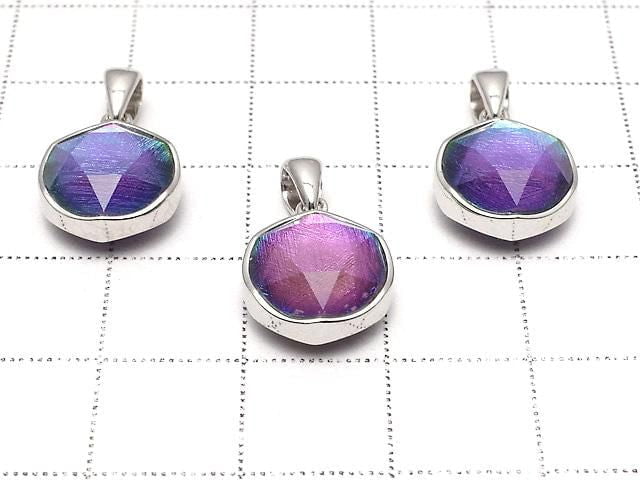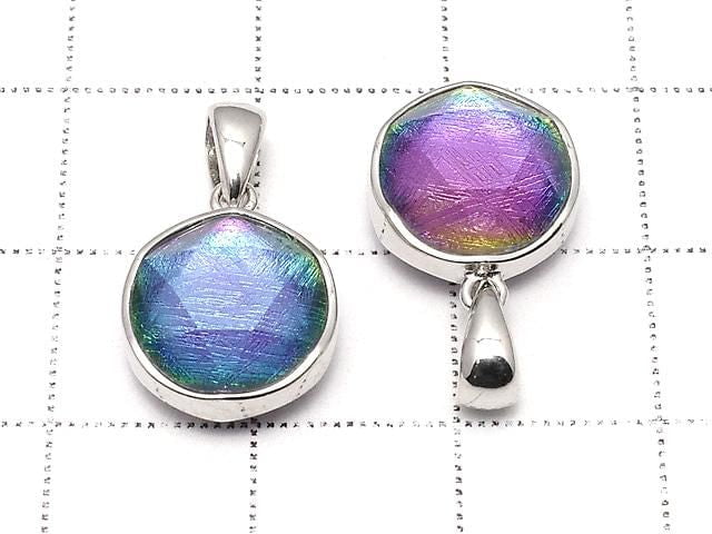 [Video] Meteorite (Muonionalusta) Pendant Both Side Finish 11mm Rainbow Color Silver 925 1pc