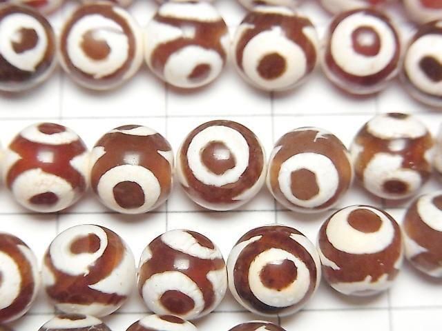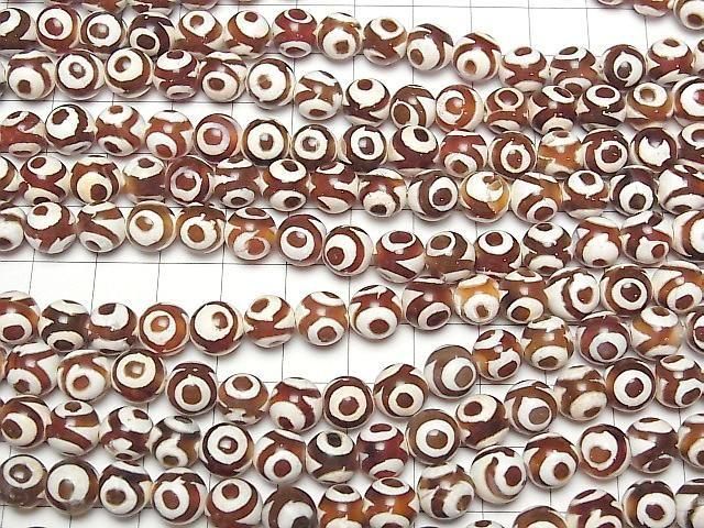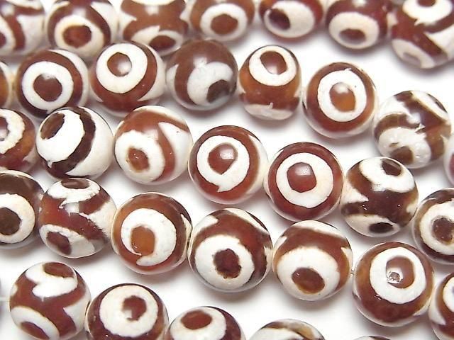 [Video] dZi Beads Round 8mm Red Brown x White 1strand beads (approx. 14 inches/34 cm)