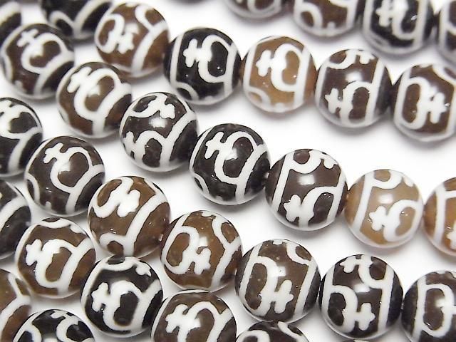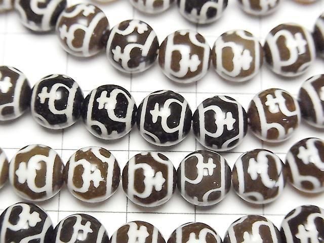 [Video] Treasure Vase dZi Beads (Hobin Tenju) Round 8mm Dark Brown Half or 1strand beads (approx. 12 inches/30 cm)