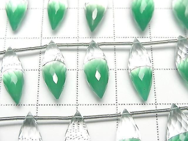 [Video] High Quality Crystal and Green Onyx AAA Marquise Rice Faceted Briolette 1strand beads (8 pcs)