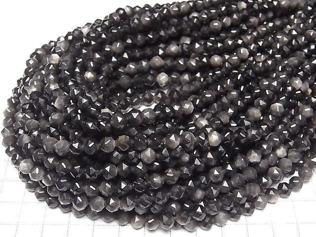 [Video] Silver Obsidian Star Faceted Round 6mm 1strand beads (approx. 15 inches/36 cm)