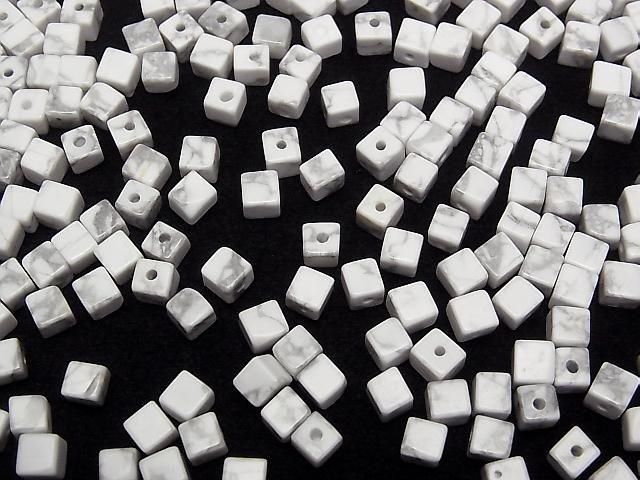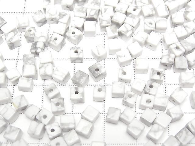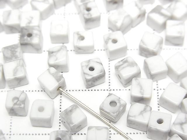 [Video] Howlite Magnesite Cube 4x4x4mm [Half Drilled Hole] 4pcs