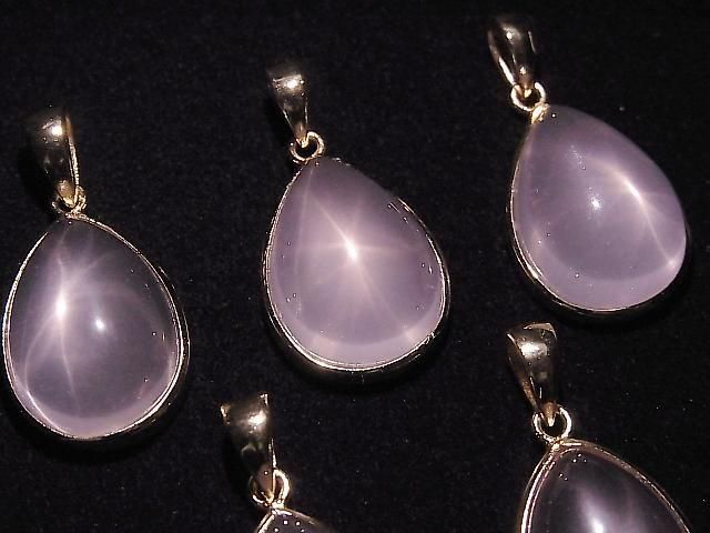 [Video] Star Rose Quartz AAA Pear Shape 19x14mm Pendant 18KGP 1pc