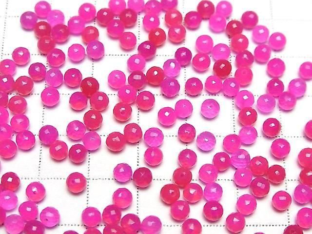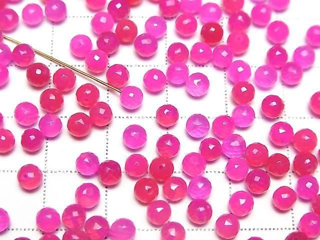 [Video] Fuchsia Pink Chalcedony AAA Half Drilled Hole Faceted Round 4mm 10pcs