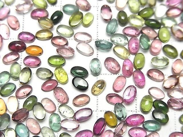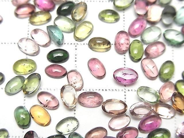 [Video] High Quality Multicolor Tourmaline AAA- Oval Cabochon 5x3mm 10pcs