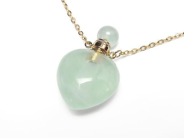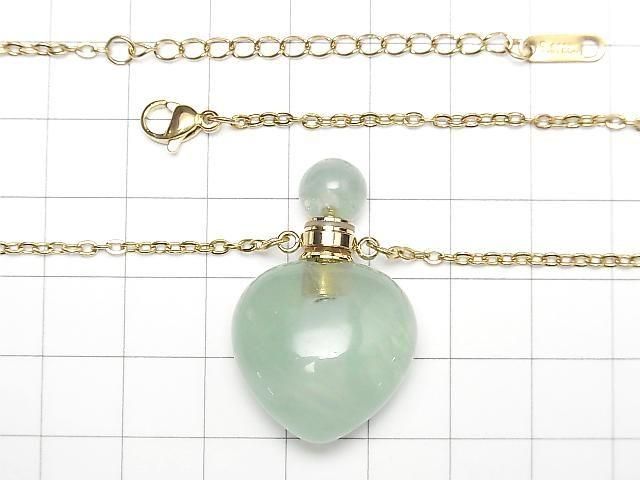 [Video] Green Fluorite Bottle Necklace with Heart Beads 35x22mm 1strand beads (approx. 22 inches/56 cm)