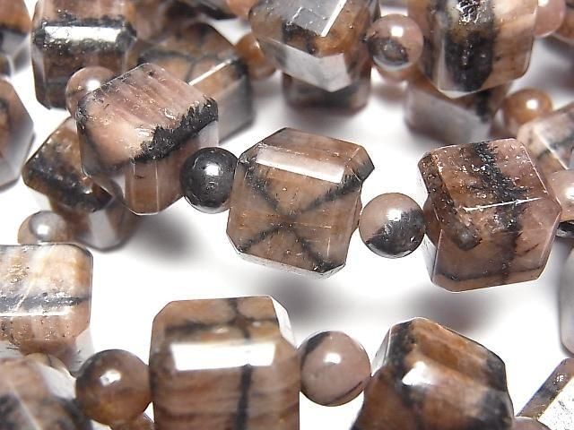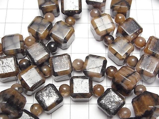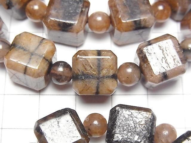[Video] Chiastolite Cube Shape 12mm & Round 6mm Bracelet
