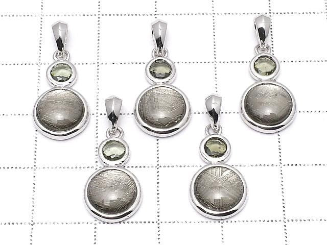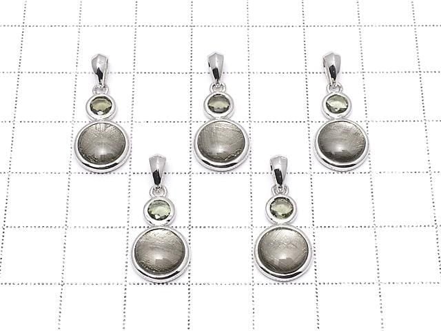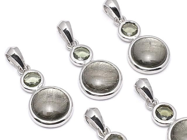 Meteorite & Moldavite 1-stone Coin Pendant 10mm Silver925 Black 1pc