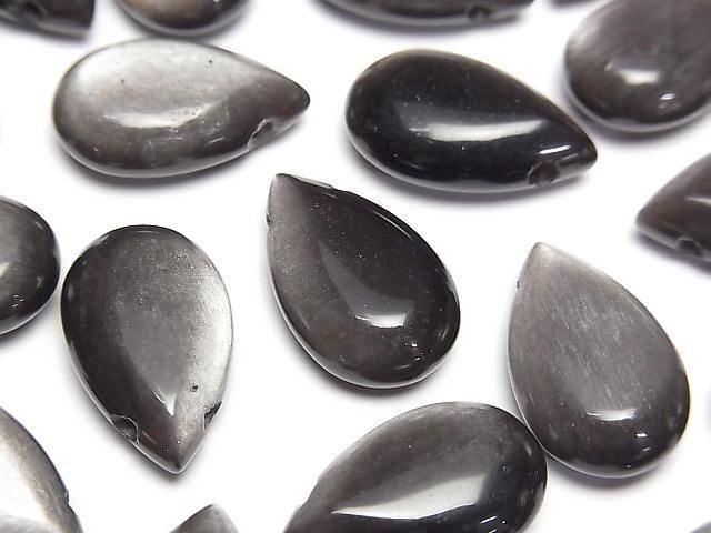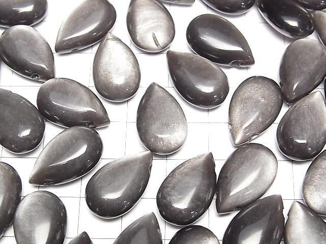 [Video] Silver Obsidian Pear Shape (Smooth) 20x12mm 2pcs