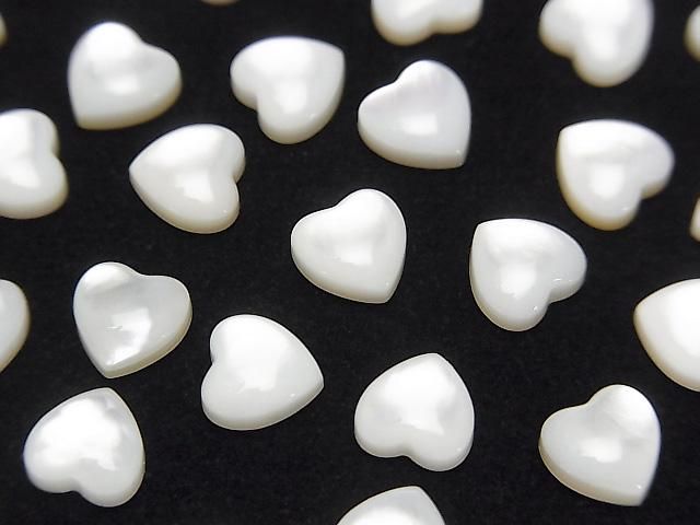 [Video] High Quality White Shell (Silver-lip Oyster) AAA Heart Cabochon 6x6mm 5pcs