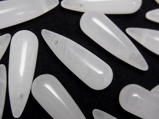 [Video] White Jade Drop (Smooth) 25x8mm 2pcs