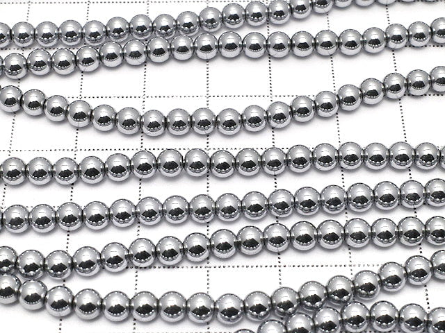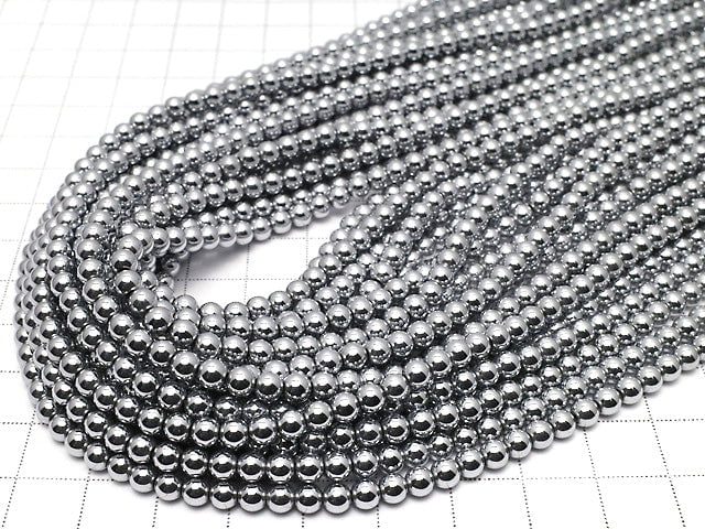 Hematite Round 4mm Silver coating 1strand beads (aprx.15inch / 38cm)