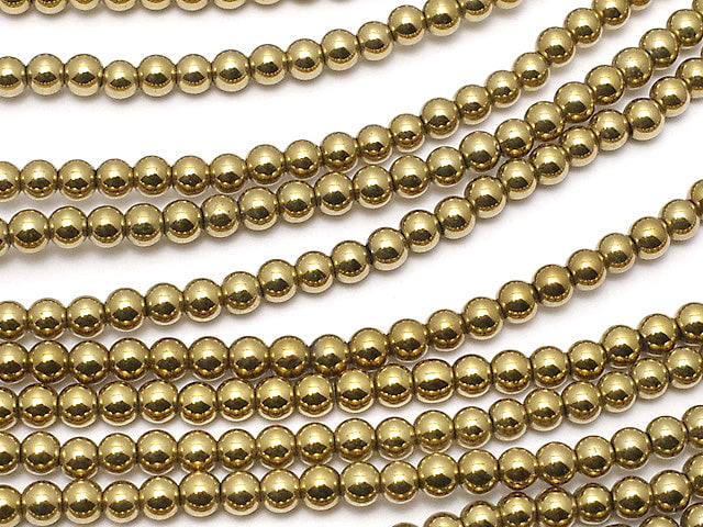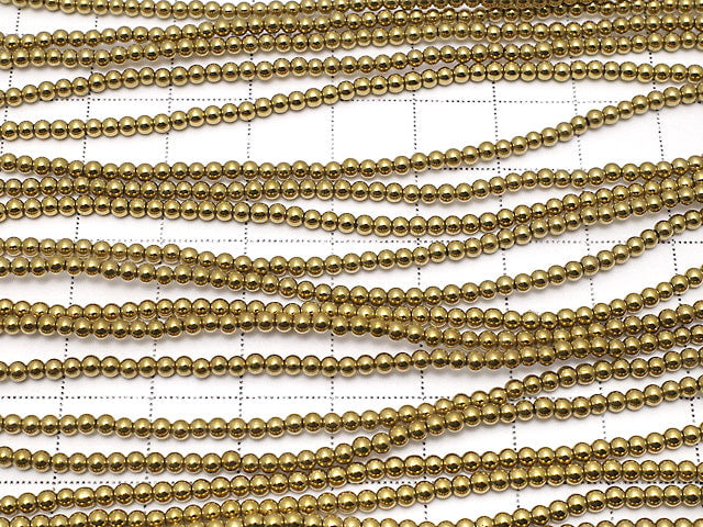 Hematite Round 2mm gold coated 1strand beads (aprx.15inch/38cm)