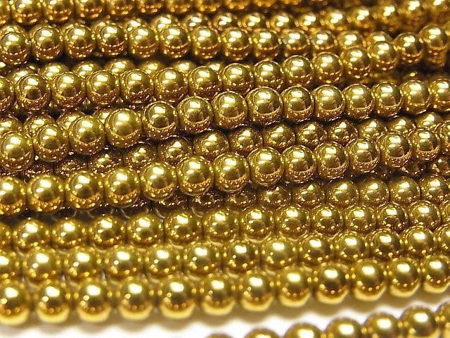 Hematite Round 3mm gold coating 1strand beads (aprx.15inch / 38cm)