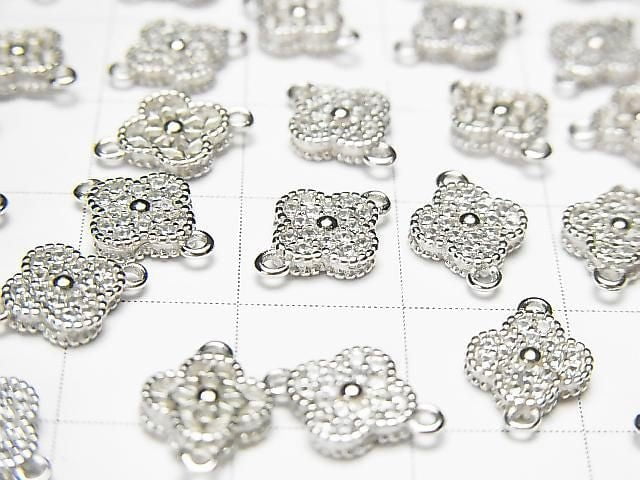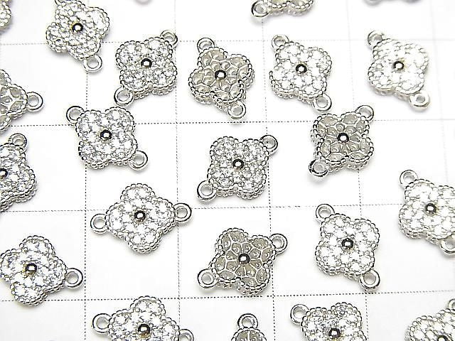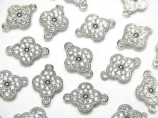 Silver925 Joint Parts Flower Motif (with CZ) 7x7x2mm Rhodium Plated 1pc